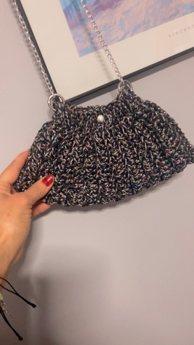 Gri Örgü Kadın Çanta Zincir Askılı