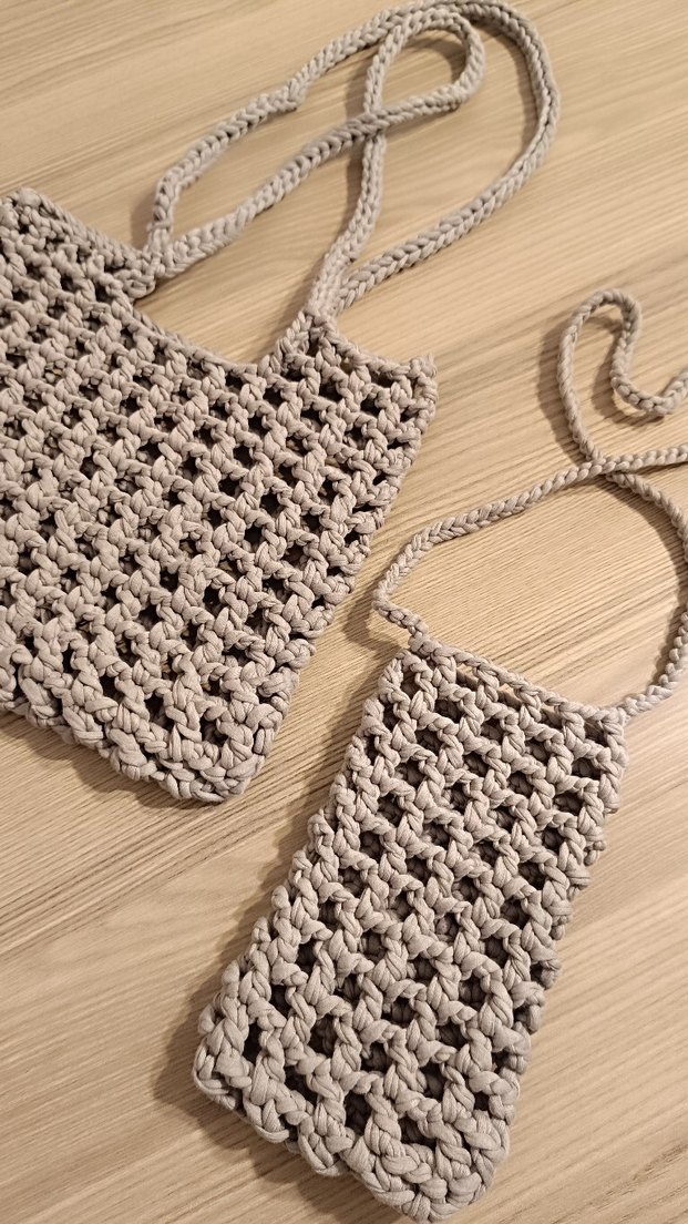 Gri renkte, nakış desenli örgü çapraz çanta. Bohem tarzı yansıtan, günlük kullanıma uygun rahat bir model.