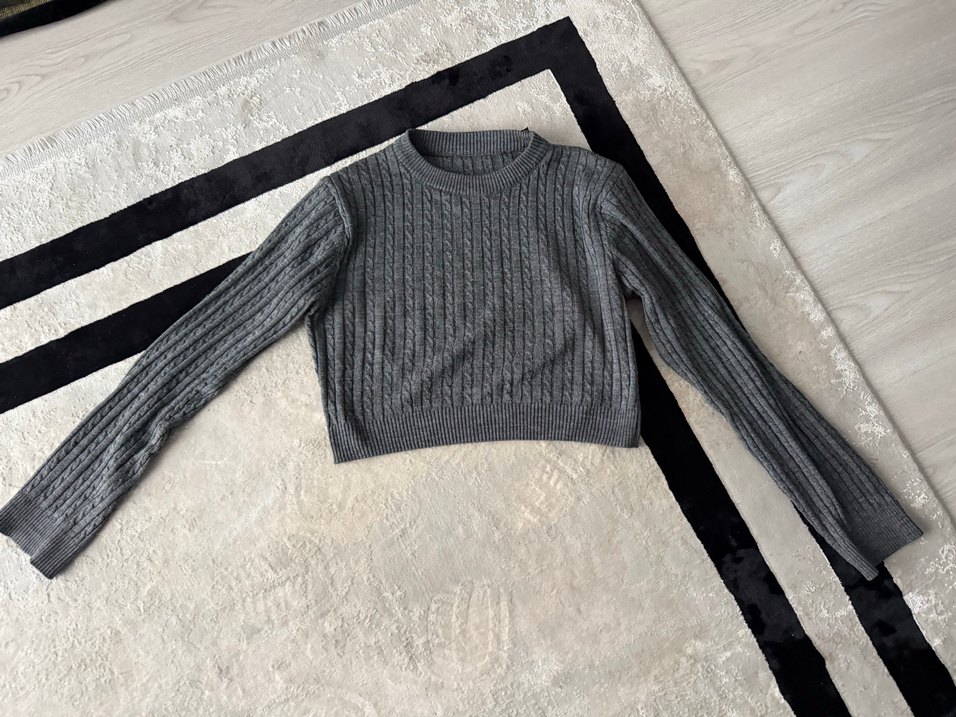 Gri Örgü Kadın Crop Kazak