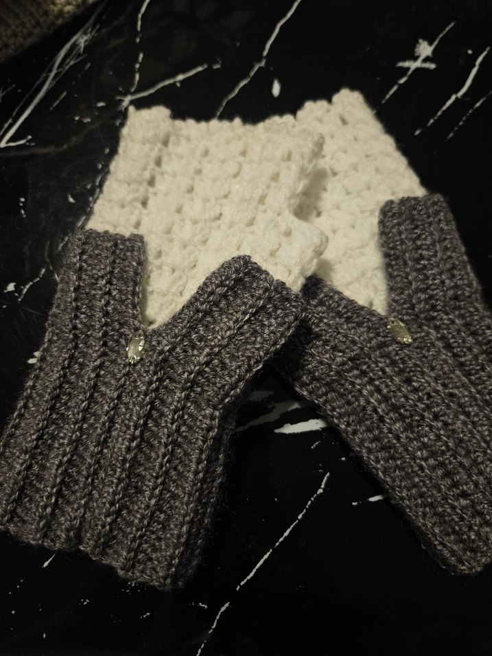 Yumuşak iplikten örülmüş, gri renkte, parmakları açık kadın eldiveni. Rahat ve gotik tarzda, sıcak tutar.El işi örgüdür.