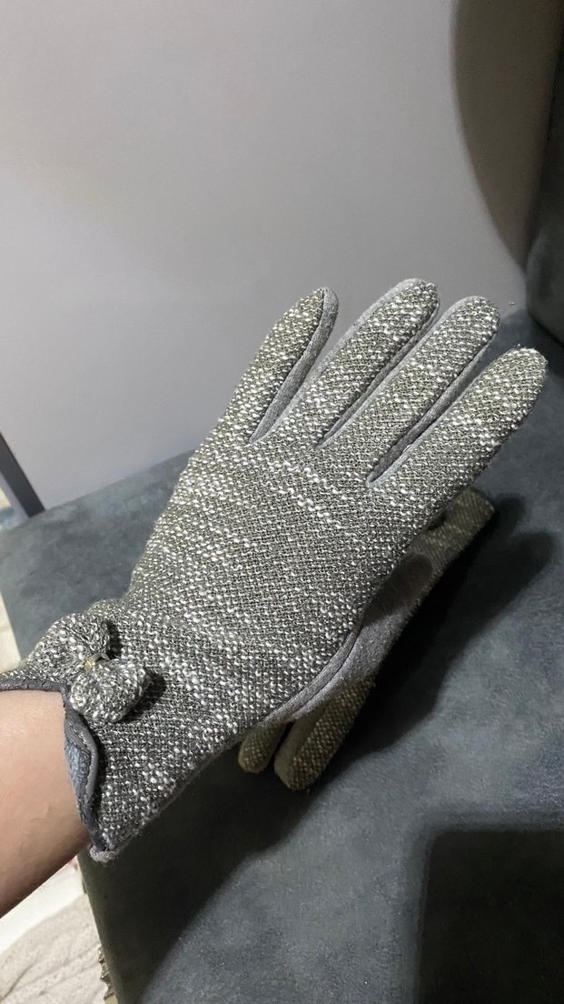 Gri örgü kadın eldivenleri, rahat dokusu ve şık fiyonk detayıyla sokak modasına uygun, trend belirleyenler için ideal.