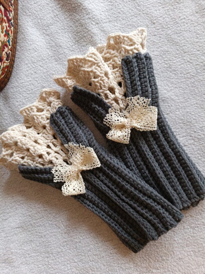Satın almak için lütfen yeni ilan açtırınız. Gri örgü kadın eldivenleri, dantel detayları ve fiyonkuyla rahat ve vintage bohem tarzını birleştirir.