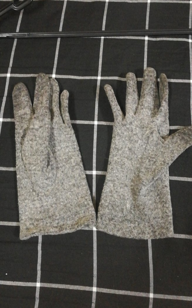 Kadınlar için yumuşak ve sıcak kumaştan örülmüş gri renkli, rahat ve vintage tarzda eldivenler.
