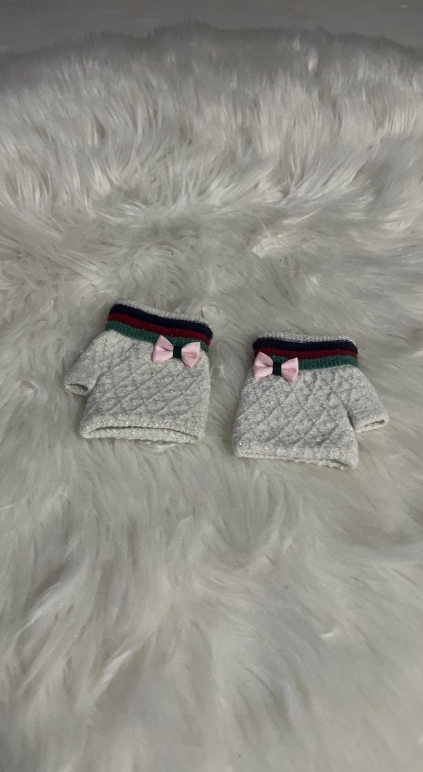 Gri örgü kadın eldivenleri, rahat dokusu ve pembe fiyonk detaylarıyla trendy casual sokak stiline uygun.10cm boy uzunluğu