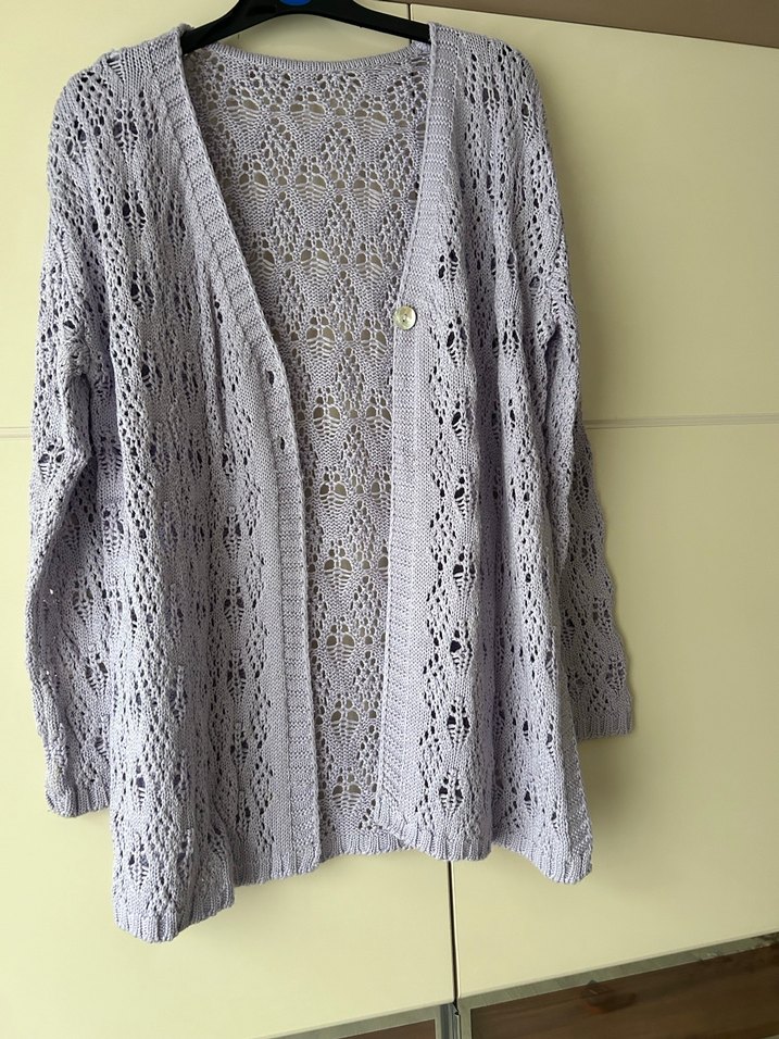 Gri renkli, örgü dokulu, uzun kollu, normal boy midi hırka. Salaş kesimi ve yakası notched lapel tarzındadır. Günlük kullanıma uygundur. Yelek tüylenme yapmaz çok kaliteli ince bir kere giyilmiştir