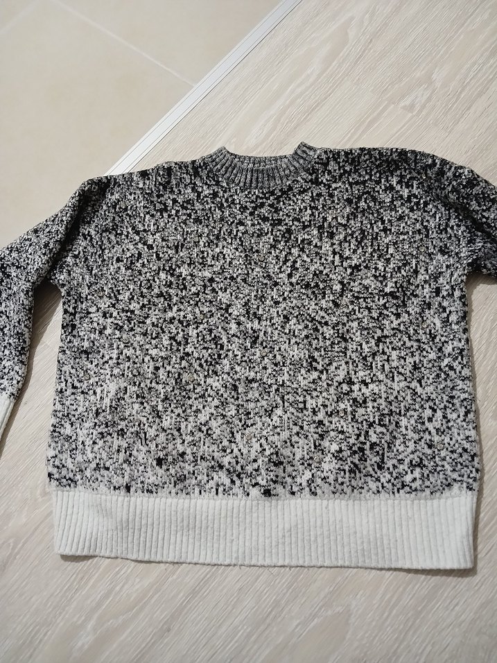 Gri örgü kadın sweatshirt, yuvarlak yaka ve uzun kollu, rahat ve bol kesimdir. Sade, desensiz tasarımıyla günlük kullanıma uygundur. tas detaylı