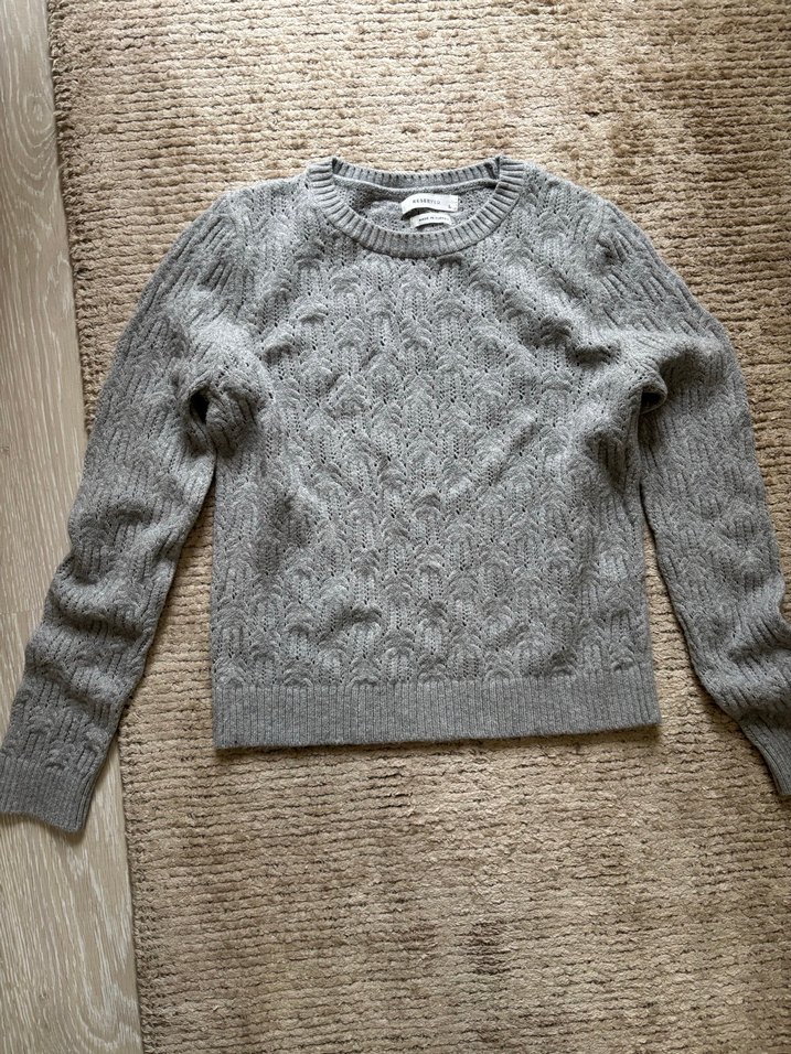 Gri renkli, örgü kumaştan uzun kollu, yuvarlak yakalı ve bol kesim kadın kazak. Rahat ve günlük kullanıma uygun sade tasarım. Bir iki kere kullanılmıştır butik ürünüdür marka temsili işaretliyorum iade almıyorum