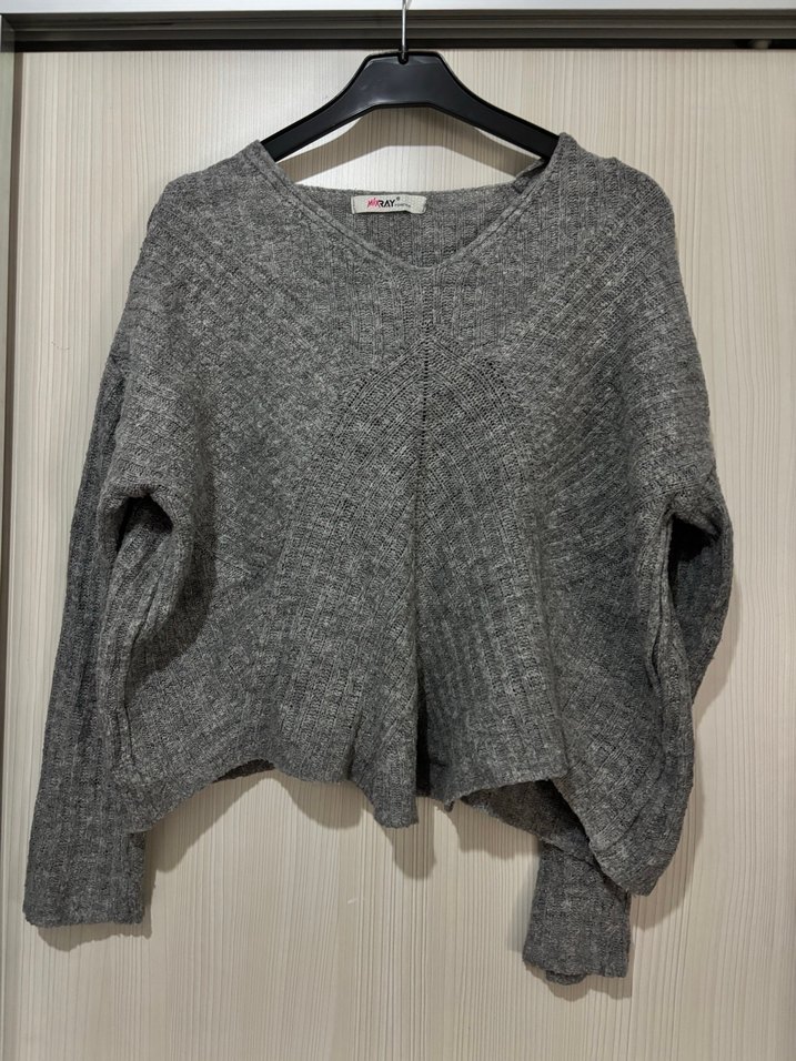 Gri renkli, uzun kollu ve yuvarlak yakalı örgü kadın kazak. Bol kesim ve kısa boy tasarımıyla rahat ve gündelik stil sunar. Hiçbir sorunu yok sadece iki kere giyildi