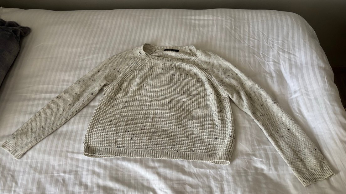 Gri renkli örgü kadın kazak, uzun kollu ve yuvarlak yakalıdır. Rahat ve bol kesim yapısıyla günlük kullanıma uygundur.