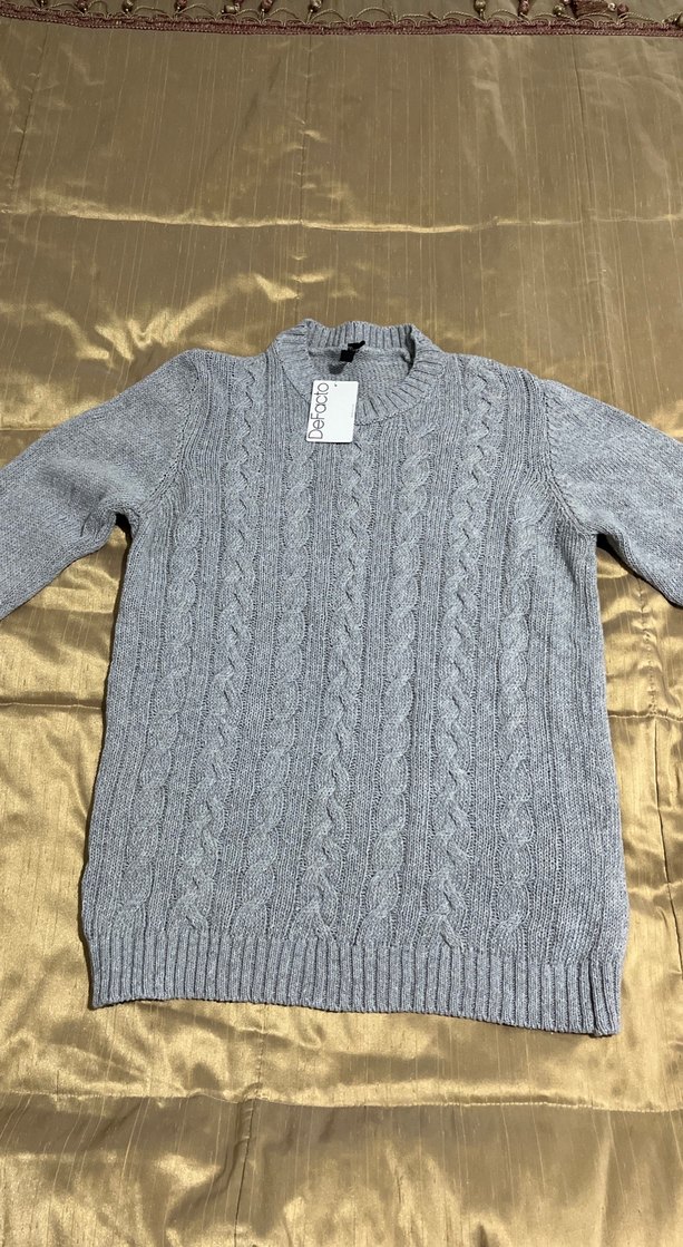 Gri renkli, örgü desenli, yuvarlak yaka ve uzun kollu kadın kazak. Salaş kesimi ve midi boyuyla rahat, günlük kullanıma uygun.