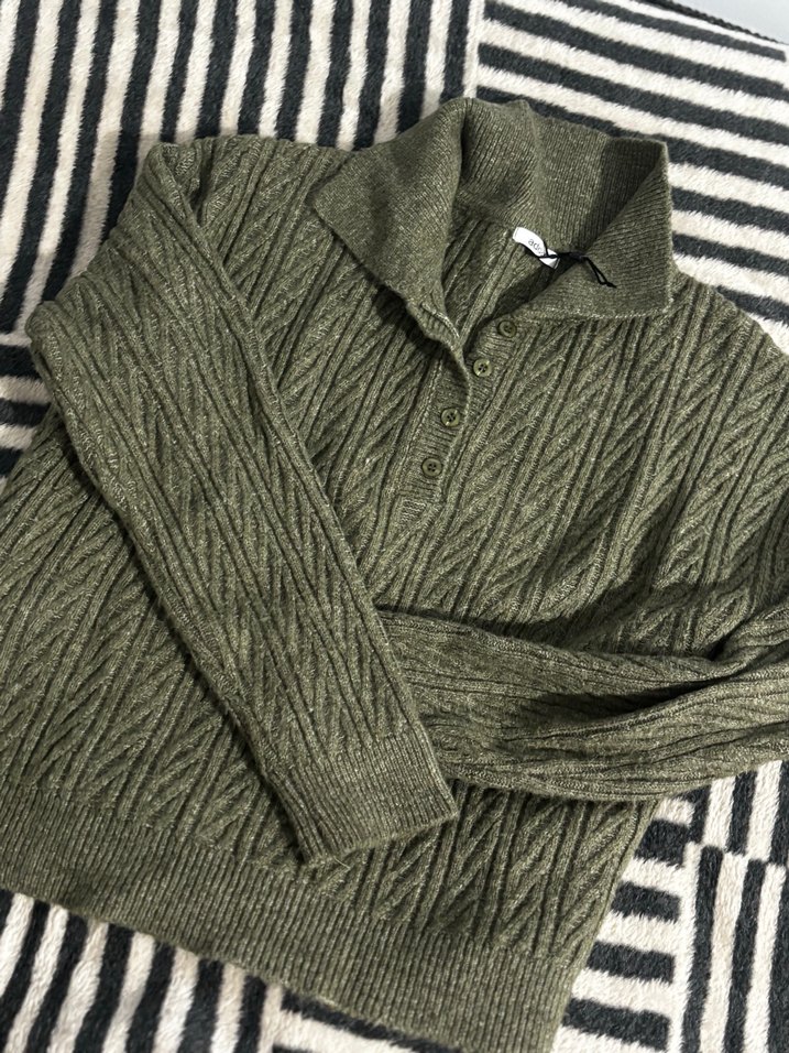 Gri örgü kazak, yüksek yakalı ve uzun kollu, bol kesimli olup rahat ve günlük kullanım için uygundur.