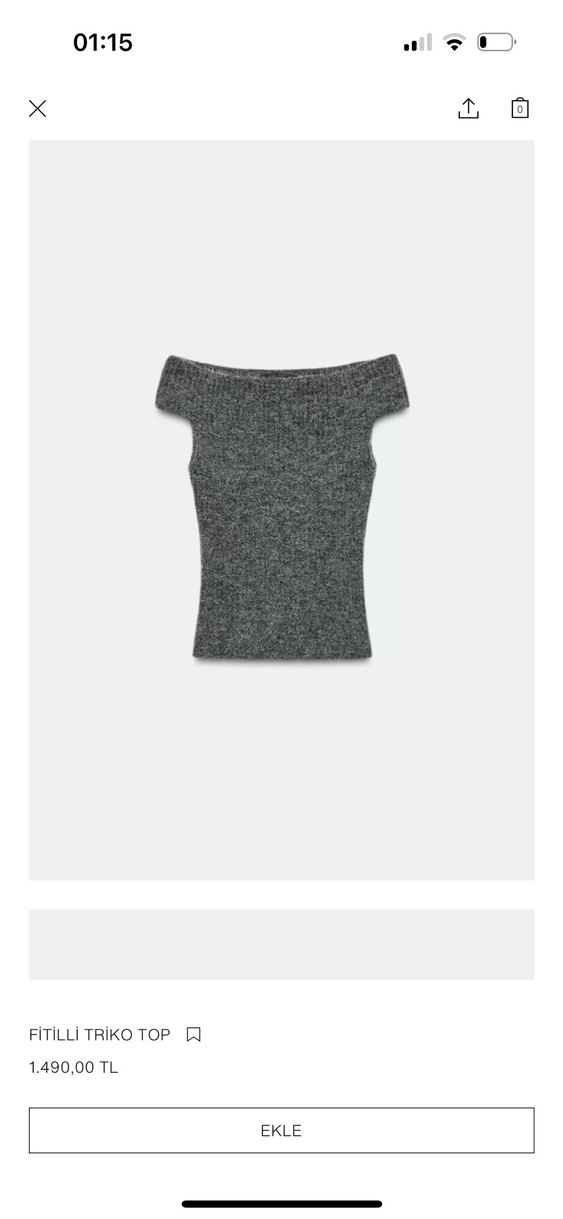kolsuz triko suveter.modelin durusunu begenmedigim icin satiyorum.daha dun teslim edildi etiketi vs duruyor ref no duruyor durusunu gormek isteyen zara uygulamasindan diger fotograflarina bakabilir (kumasi kasindirmaz cok yumusak)