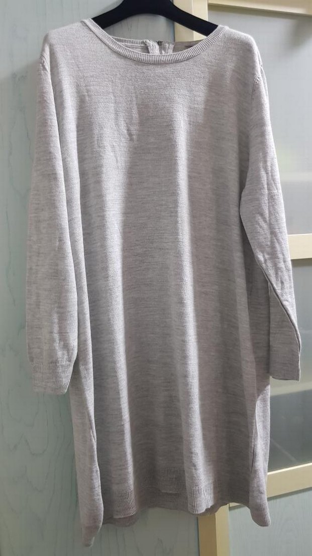 Gri renkli, örgü dokulu midi uzunlukta kadın triko kazak. Yuvarlak yaka ve uzun kolludur, rahatlığı artıran bol kesime sahiptir.