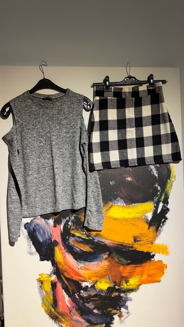 Gri renkte, uzun kollu ve yuvarlak yaka örgü kadın kazak. Gevşek kesimi ve kısa etek mini boyuyla günlük sokak stiline uygun rahat bir model.