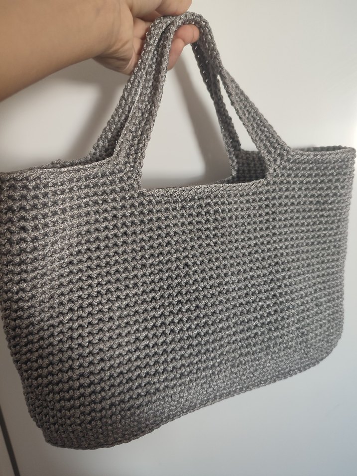 Gri renkli, örgü dokulu, sade ve minimalist tasarımlı kadın omuz çantasıdır. Günlük kullanıma uygundur.