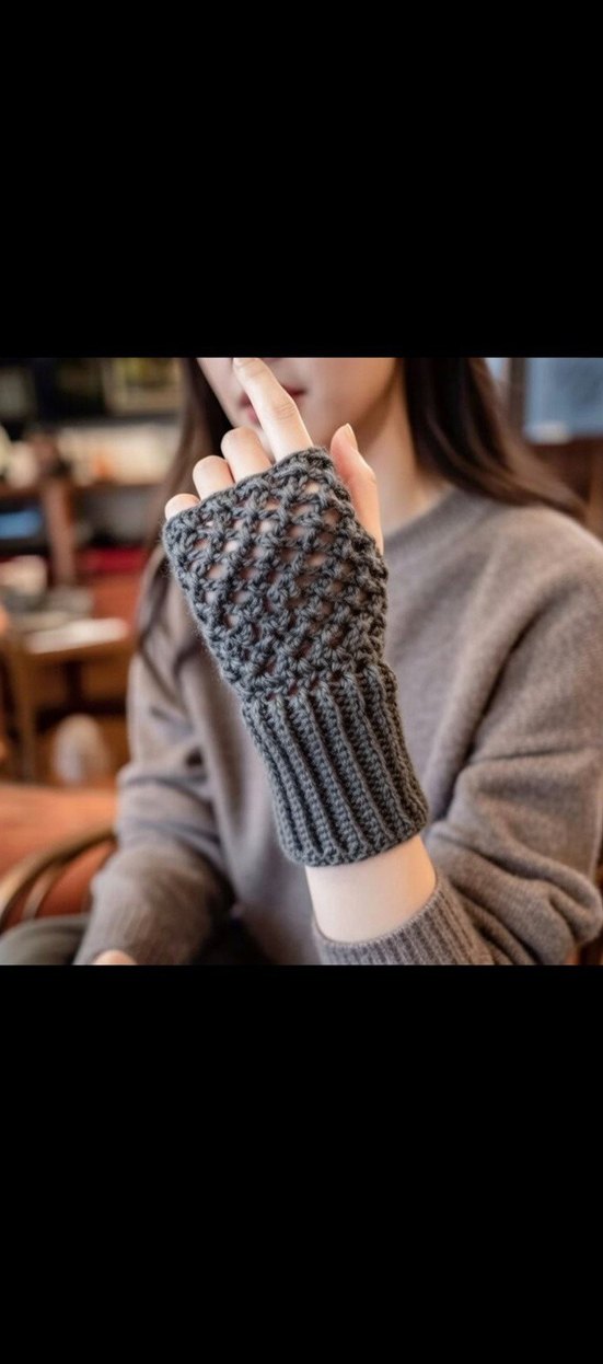 Gri renkli, örgü kadın eldivenleri. Parmaksız tasarımıyla sıcak ve bohem tarzda, trend rahat görünüm sunar.