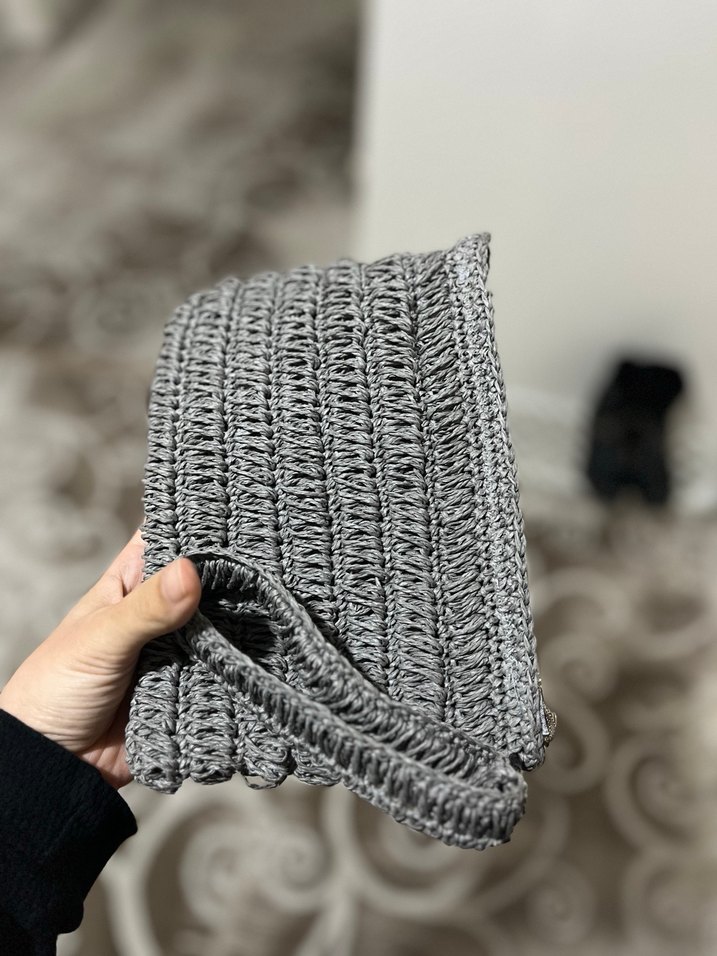 Yumuşak kağıt ip ile yapılmış, gri renkte ve desen içermeyen, günlük kullanıma uygun rahat örgü kadın portföy çanta. İstenilen renk ve boy yapılır . Dmden belirtmeniz yeter. Fiyatlar boydan boya göre değişir. Ürün astarlıdır