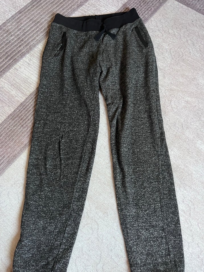 Gri örgü kumaştan, rahat kesim ve midi boyda, fermuarlı cepli, bağcıklı bel detaylı günlük kullanıma uygun eşofman altı.