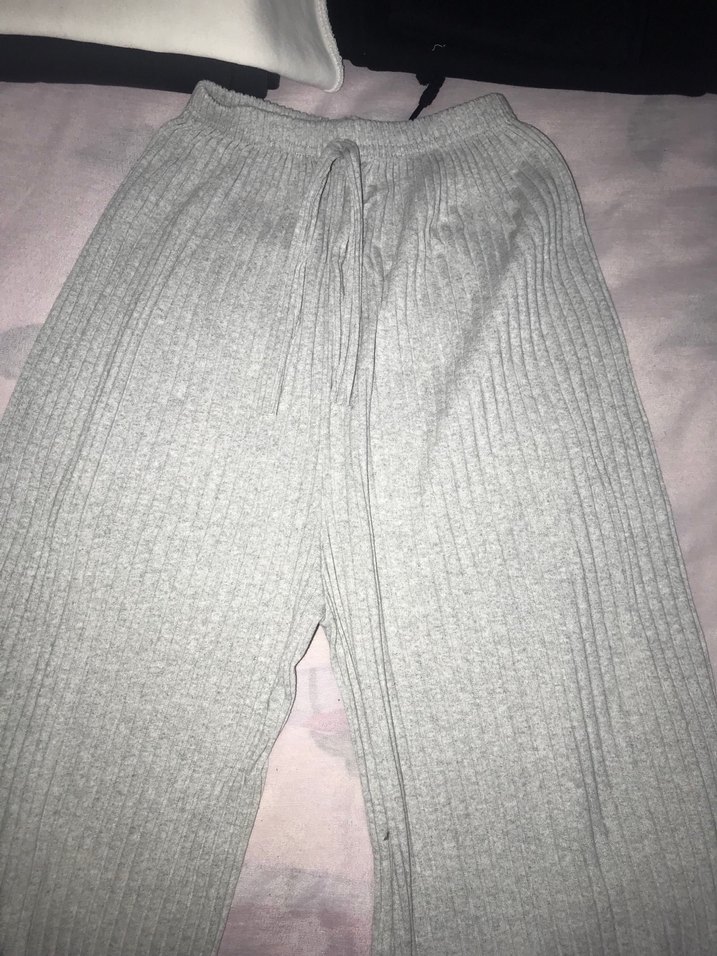 Gri renkli, örgü dokulu, rahat kesim ve normal boy kadın pantolonu. Yumuşak keten kumaştan üretilmiştir, günlük kullanıma uygundur.