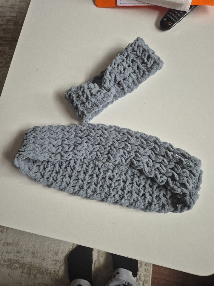 Gri Örgü Kadın Saç bandanası ve boyunluk atkı takımı