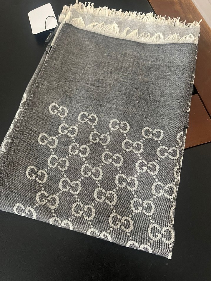 Gri renkte örgü dokulu, püsküllü kadın şalı. Rahat ve çağdaş tarzda, günlük kullanıma uygun bir şal.