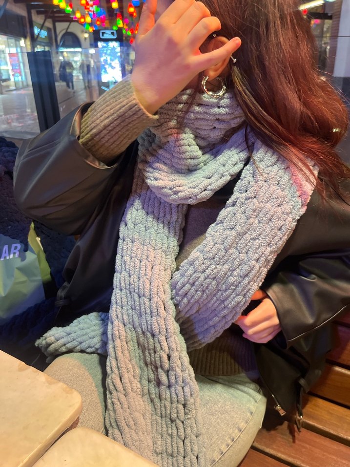 Pastel gri renkte örgü kadın şalı, rahat ve sıcak dokusuyla trend sokak modasına uygun. Yumuşak ve sıcak örgü kumaştan üretilmiştir.