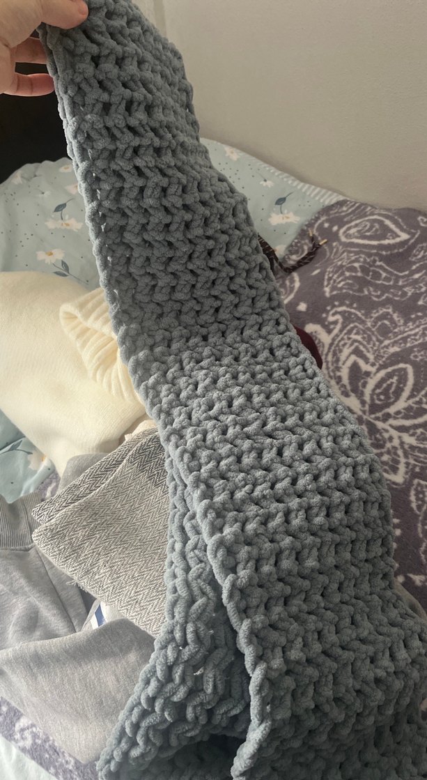 Yumuşak örgü kumaştan yapılmış gri kadın şalı, rahat ve sade bir tasarıma sahip, temel normcore stil için uygundur.