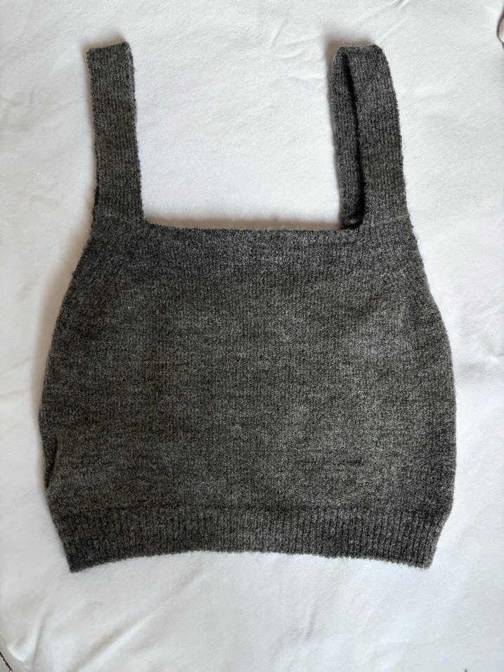 Gri renkte, örgü dokulu, kolsuz kadın süveter. Hiç giyilmedi