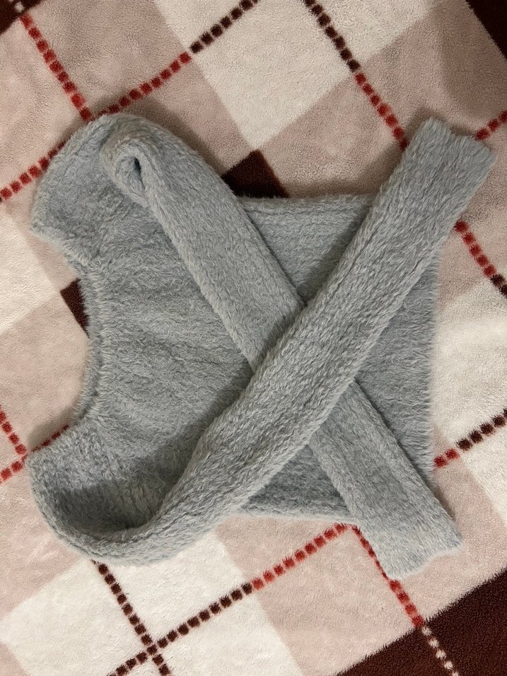 Gri örgü ve boğazlı, askılı kollu kadın süveter. Yumuşak ve rahat fleece kumaştan, normal midi uzunlukta, günlük kullanıma uygun sade model.