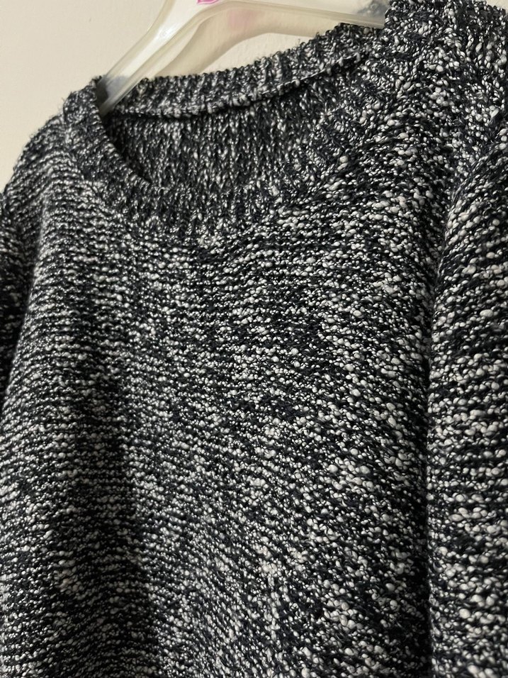 Gri örgü kumaştan, yuvarlak yaka ve uzun kollu, bol kesim kadın triko kazak. Rahat ve gündelik kullanım için uygundur. sorunu yok hiç giymedim etiketini kesmişim nerden aldım hatırlamıyorum