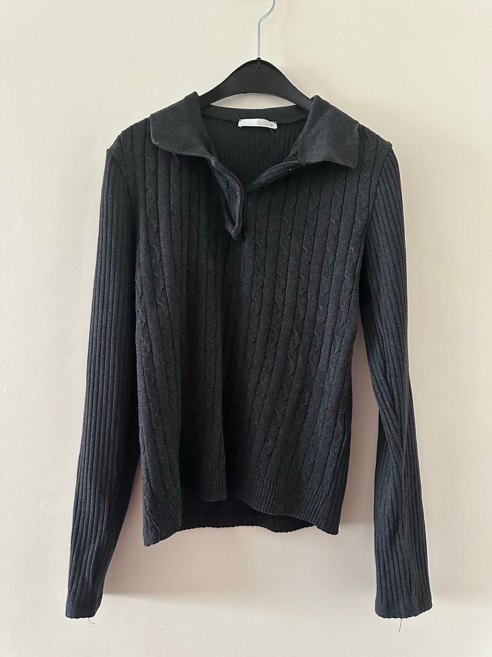 Gri örgü kadın triko kazak, yakalı ve uzun kolludur. Yumuşak keten kumaştan yapılmış, günlük kullanıma uygun, normal boyda ve vücuda oturan kesime sahiptir. Desensiz, sade ve şık tasarıma sahiptir.