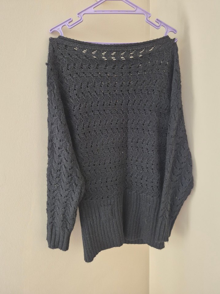 Gri renkli, örgü kadın triko kazak, tekne yaka ve uzun kolludur. Salaş ve rahat kesimiyle günlük kullanıma uygundur.