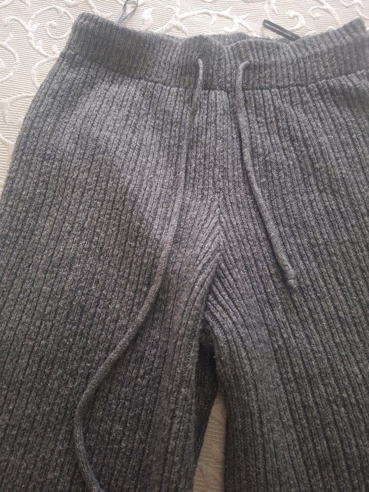 Gri renkli, örgü kumaştan yapılmış, midi boy ve dar kesim kadın pantolonu. Rahat ve günlük kullanıma uygun.