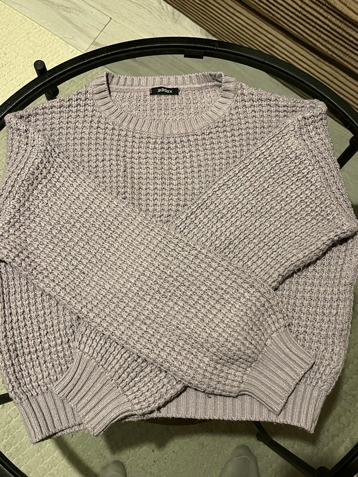 Gri renkli, örgü yapıda, rahat kesim uzun kollu ve bisiklet yaka kadın kazak, günlük rahat sokak stili için uygundur.