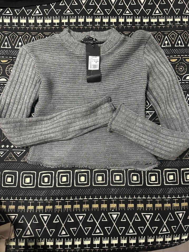 Gri Örgü Kadın Uzun Kollu Triko crop
