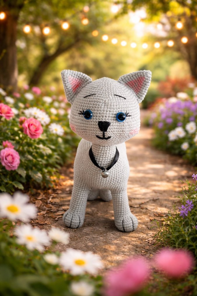 Gri Örgü Kedi Peluş Oyuncak
