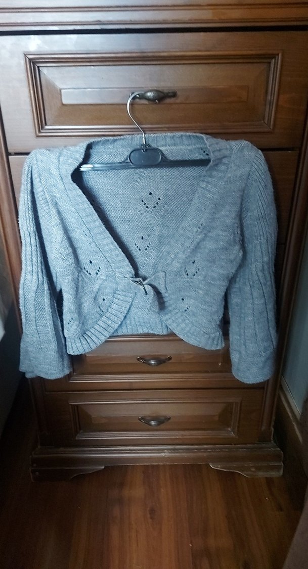 Fitted kesim gri örgü hırkası, yuvarlak yaka ve uzun kolludur. Crop, günlük kullanıma uygun bohem tarzda rahat bir üründür.