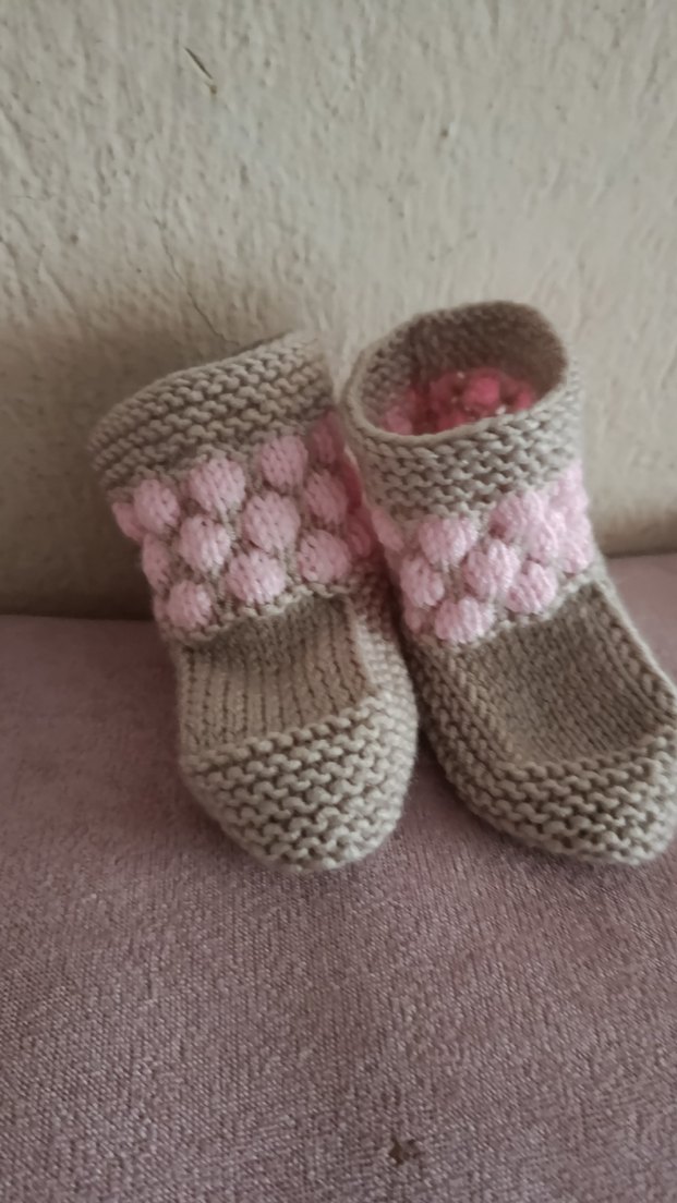 Yumuşak dokulu, ön kısmında pembe detaylı, klasik tarzda gri örme kız bebek patik. Konfor ve sıcaklık sağlar.