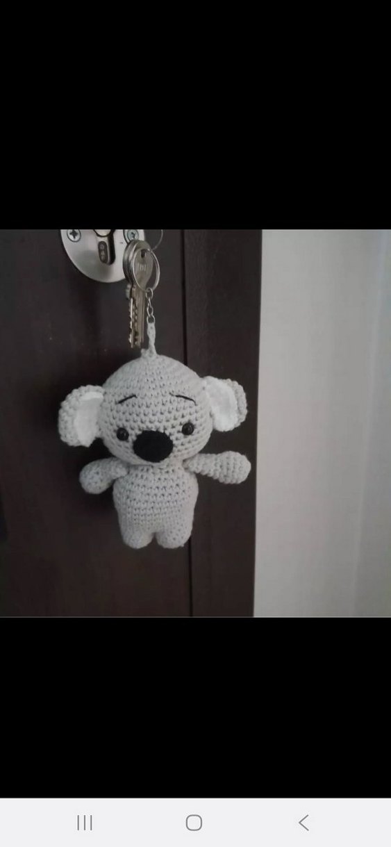 Yumuşak örgü kumaştan yapılmış gri koala şeklinde . Sevimli tasarıma sahip ve anahtarlık olarak kullanılabilir.
