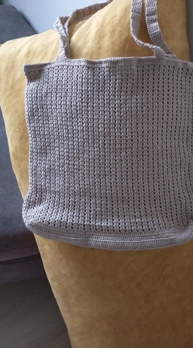 Gri renkli, el örgüsü kol çantasıdır. Düz ve sade dokusu, yumuşak yapısı ve sağlam sapları ile kullanışlıdır.