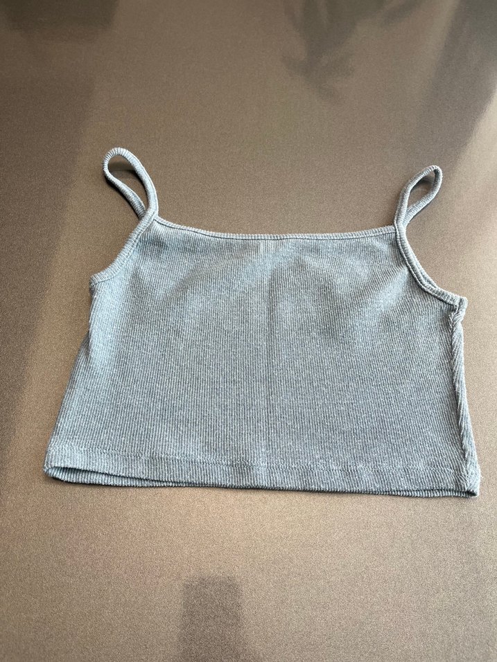 Fitted kesim, örgü keten kumaştan gri kolsuz kadın atlet, günlük sokak tarzı için rahat bir seçimdir.