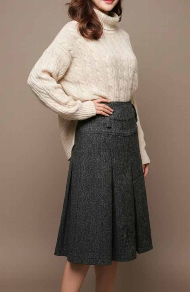 Gri örgü midi etek, bol kesim ve desensiz tasarımıyla günlük rahat kullanım için uygundur. Trendy ve konforlu bir stil sunar.