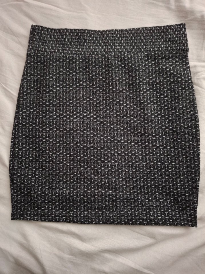 Gri renkte,dokulu ve mini boyda, vücuda oturan mini etek. Sentetik kumaştan üretilmiş, minimalist ve trend sokak stili için uygun. rengi fotoğrafta görünenden daha koyudur