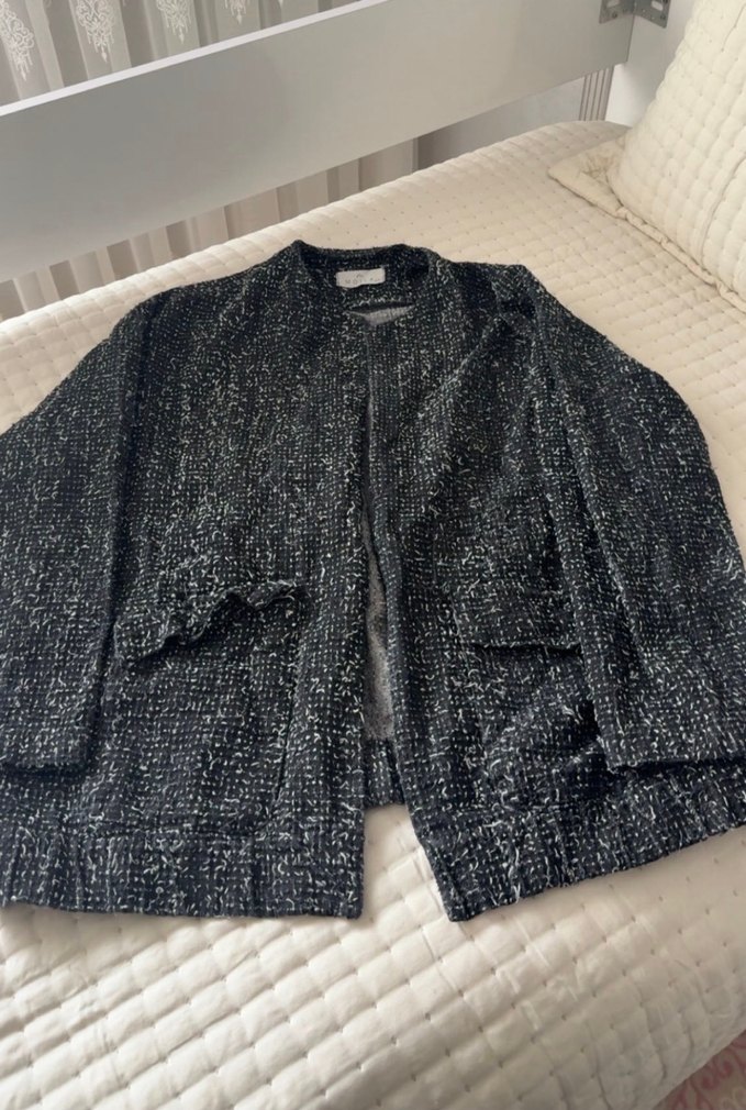 Bu koyu gri örgü kadın kaban, uzun kollu ve kesik yaka tasarımıyla bol kesimdir. Kısa boyu ve desensiz yapısıyla günlük ve sokak stiline uygundur.
