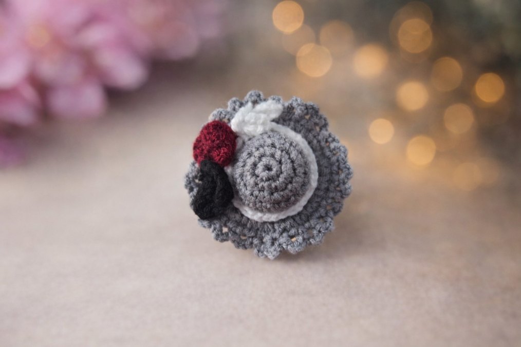 Gri Örgü Nakışlı Şapka Model Lastik Toka