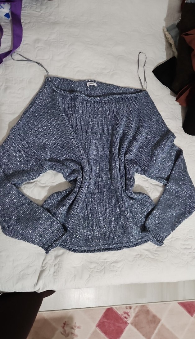 Gri renkli, örgü kumaştan, salaş kesim ve uzun kollu, tek renk ve kayık yaka tasarımlı, normal midi boyda kadın kazak. Rahat ve gündelik kullanıma uygundur.