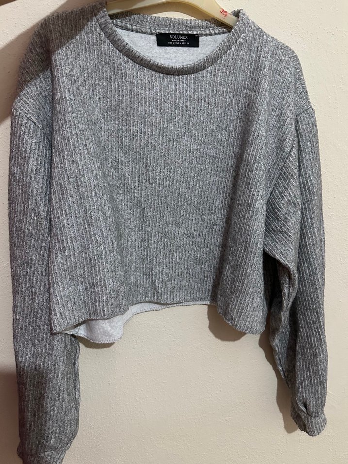 Gri renkli, örgü kumaştan yapılmış, uzun kollu ve salaş kesim kadın kazak. Orta boy uzunluğu ve yuvarlak yaka tasarımıyla günlük rahat sokak stili sunar.
