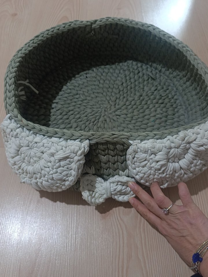 kedim için yatak olarak yaptırmıştım fakat kullanmadı. ister kedi yatağı olarak ister organizer olarak kullanabilirsiniz kurdelesi çıktı fakat silikonla yapıştırılır