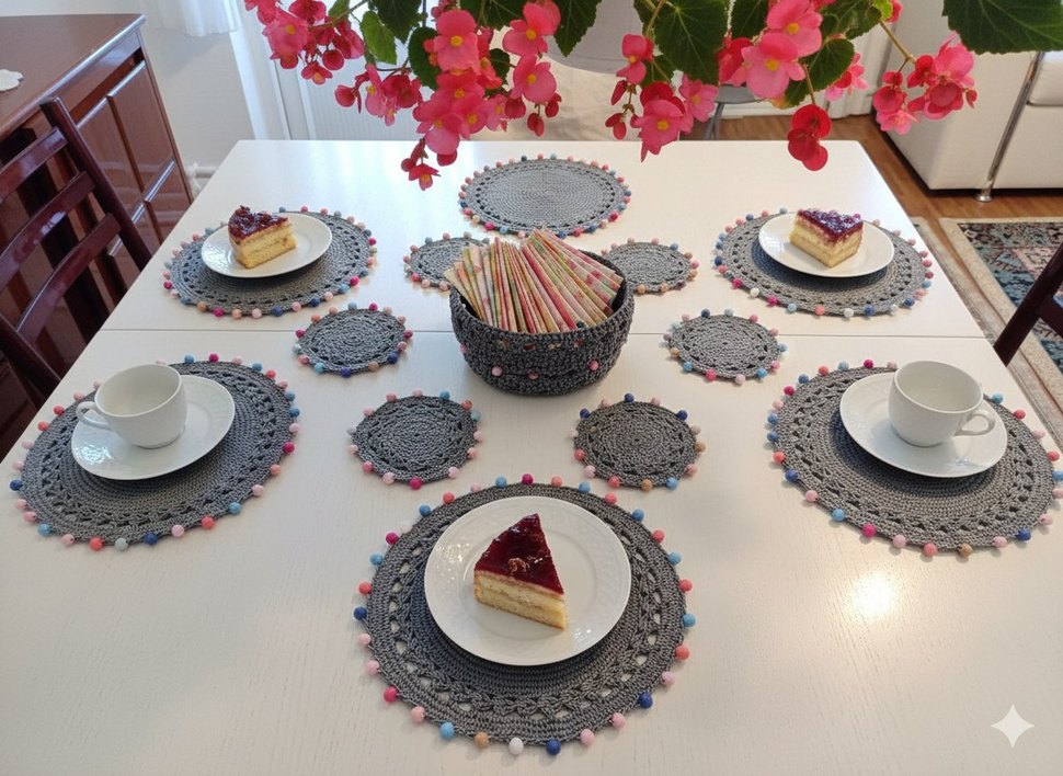 Gri Örgü Sepet ve Bardak Altlıkları