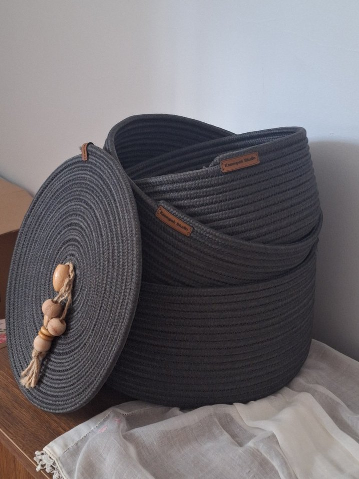 3lü sepettir. Sadece büyük olanın kapağı bulunmaktadır. El yapımıdır. Elde temizleyiniz.